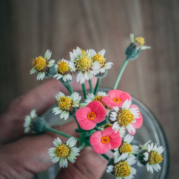 Wanneer ik bewust vertraag en in het moment ben, ervaar ik de essentie van leven. Dat is ook het moment dat ik de bloemen ruik, hoor en voel. Alsof ze me een seintje geven dat het hun moment is om hun magie met de wereld te delen. Ik maak dan verbinding met de energie van die plant om de bedoeling door te krijgen. Het kan zijn dat ik de essentie vang in een bloesemremedie of er een maceraat of hydrolaat van maak. Het is altijd een samenspel.